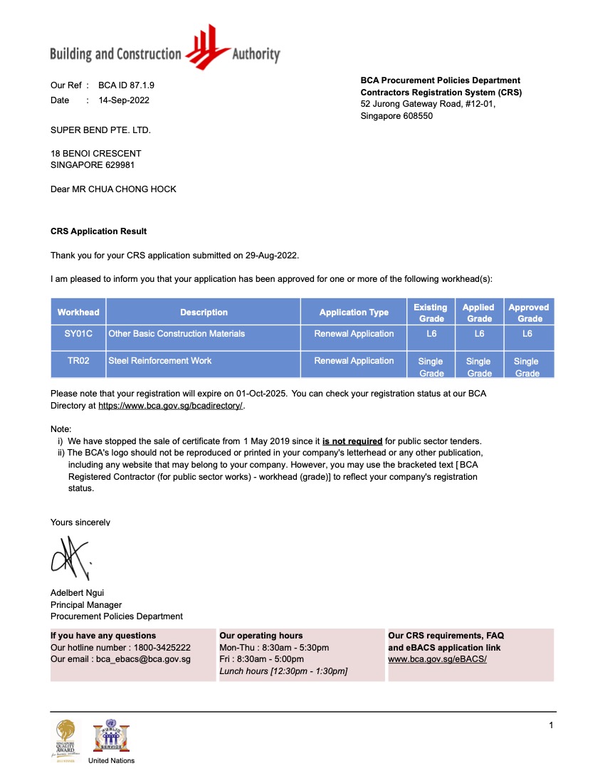 Projects successfully completed and those currently in progress by Super Bend Pte Ltd.